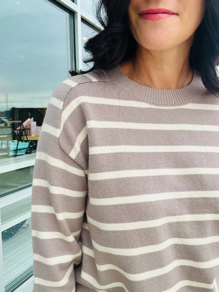 Striped Raglan Sleeve Sweater - Light Mocha